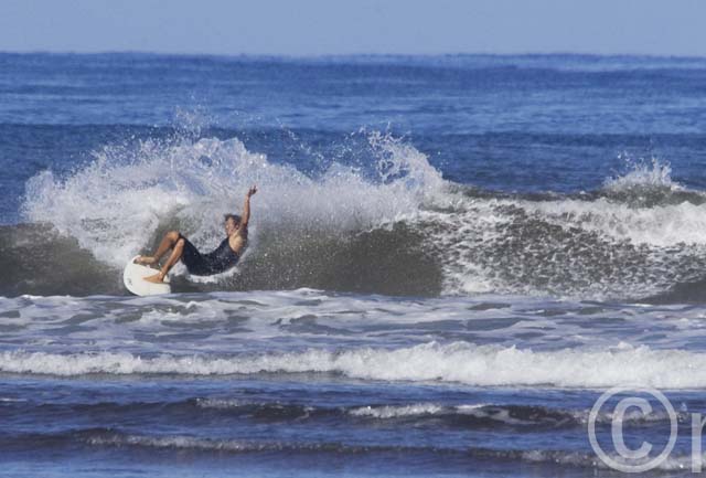 一度闘牛に波乗りに行き、たまにやってくる腰程度の波に乗った。