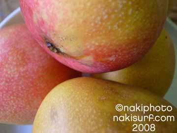 帰国後、空港で買った朝日新聞をおみやげにそのガソリンスタンドに行き、横浜出身の奥さんに渡すと、交換によく熟れたマンゴーをいただいた。