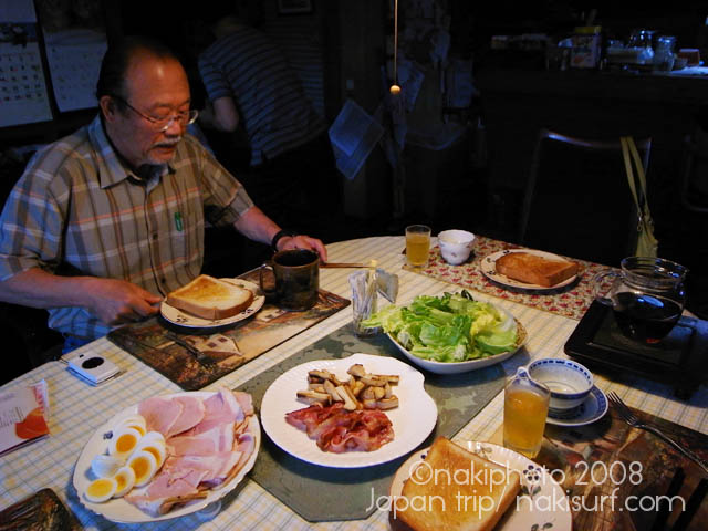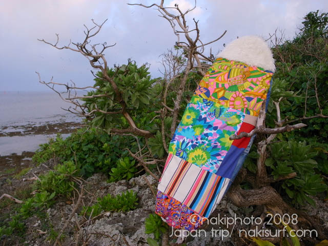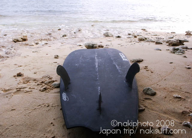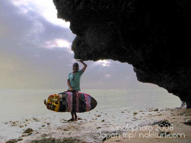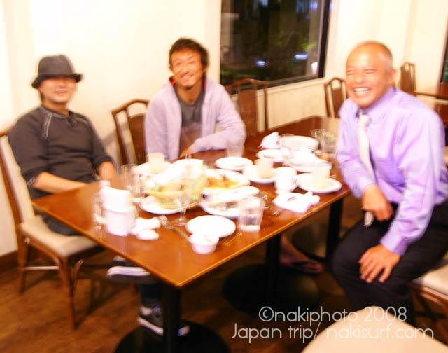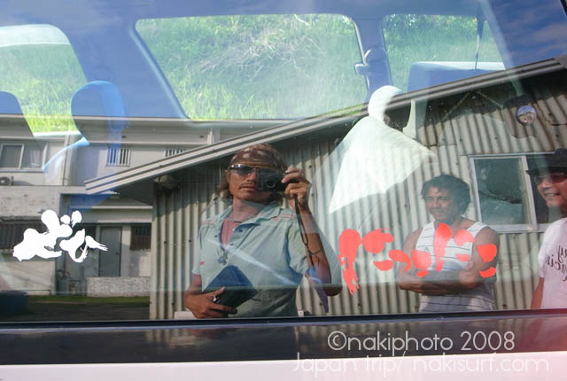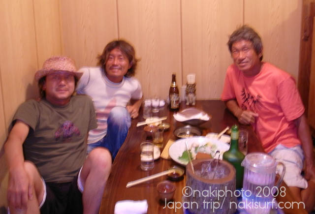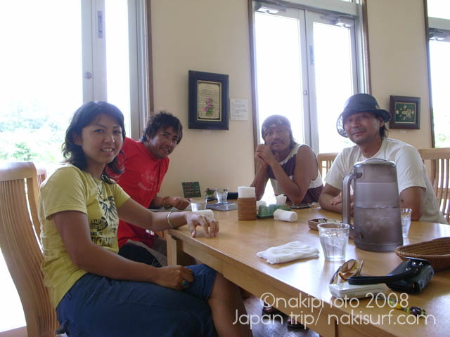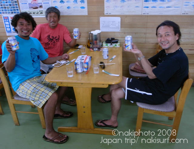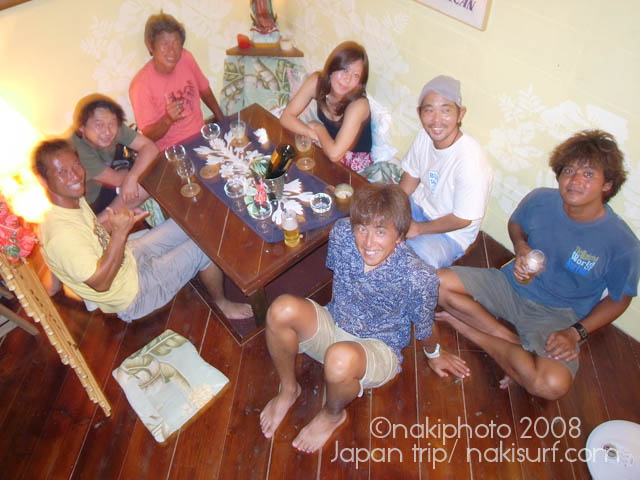 着いてすぐ波乗りに行き、嘉良さん、津村さん、がんちゃん、三浦さんの5人で4時間のスーパーファンセッションをしてきたところです。