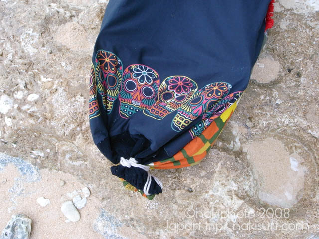 ↑フェイクファーのノーズにエスニックプリントで、エルサルバドル宮殿(そんなのはないが)風です。