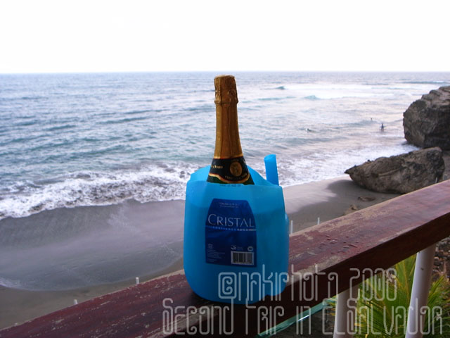 上の写真で気づいた人もいるだろうが、あれは飲料水のボトルを切って作った自家製シャンパンクーラーで、ラベルに「クリスタル」となっているのが、おしゃれでニッチだなあ、とうっとりする。