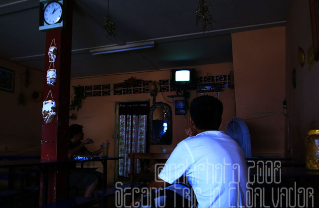 ↑店内風景。他のお客はサッカー中継を食い入るように小さなTVを見ていた。