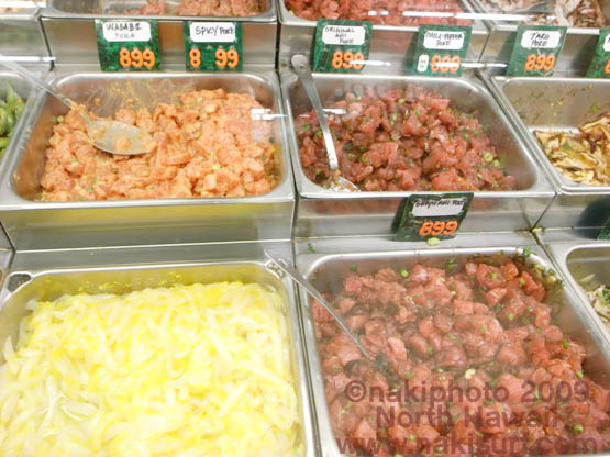 これは「ポキ」という料理で、その定義は魚、または貝、イカ、タコ、エビを海藻とごま油&醤油で和えたハワイならではのお総菜。