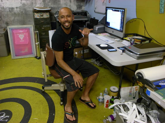 その後、NAKISURFコムのTシャツやステッカーを手がけるドクサープリント主宰のカイル鞠黒のオフィスに行くと、新作ステッカーがたくさん誕生していました。