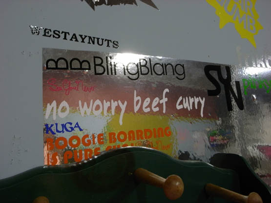 これはハワイ地方に昔から伝わる「no worry beef curry(ビーフカレー、心配しないで)」という意味なしステッカー↓