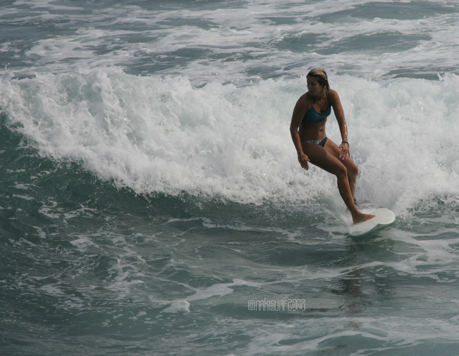 一昨日見かけたのが白人の女の子にダブルオーバーのスープ波でサーフレッスンをする地元サーファー。