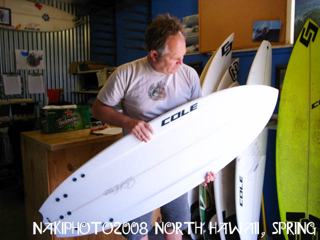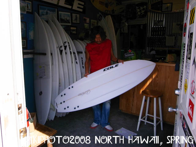 ひさしぶりのミニガン(コールはこのタイプのデザイン全てに「ピストル」と名付けている。ガンとしないところに彼のこだわりが隠されている)で波を滑り、その切り返しの角度が既存のより多くついていることに気づいた。