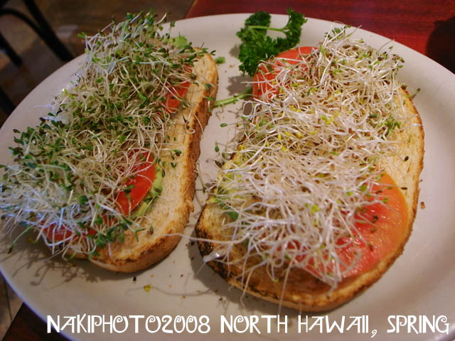 俺はベジタブルスープにトマトアボカド、スプラウトサンドイッチを食べました。
