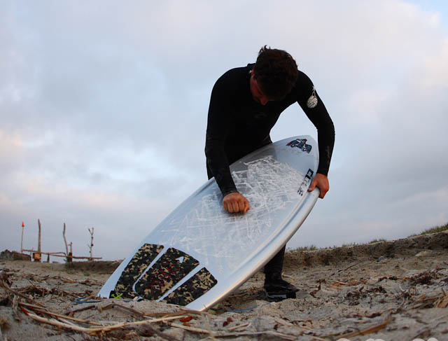 補欠はニックだが、ジョンは体重オーバー(90kg)でJeff Johnstonの6'2"x 21"x 2-5/8"を選ぶ。