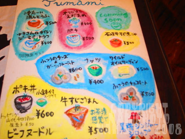 そこの雪ちゃんお手製の手描きメニューです。