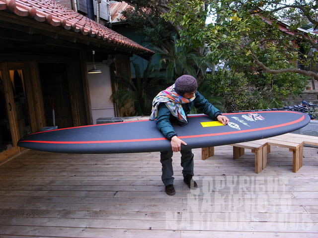 およそフラットだったが、たまにやってくるささやかな波に乗り、途中で伝説ブロガーである「七里のおじさん」の加藤さんとお会いし、ボードを土井さん宅に置き、しらすのおにぎりと豚汁の朝食を大盛りでいただき、そのまま土井さんのDBS号で横浜インタースタイルに向かう。