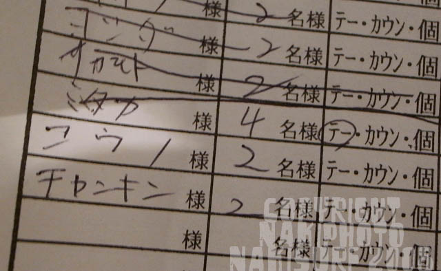お店は大繁盛で、いわゆる「待ち」だったので「チャンキン」と記入すると、店員さんが恥ずかしそうに「ちゃんきん、さん〜」と呼び出しました。
