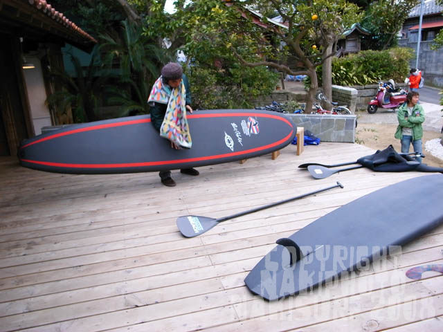 そして葉山BEAChに行き、届いたばかりのスタンドアップパドルボードの試乗をする。