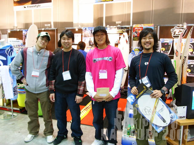 サーフサプリの増子さん、マニューバーラインの山田さん、逆真会若師範の暖くん、そしてアクアノイドの中根さんとの4ショット。
