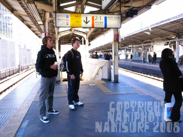 プラットホームで緊張しているふたり。