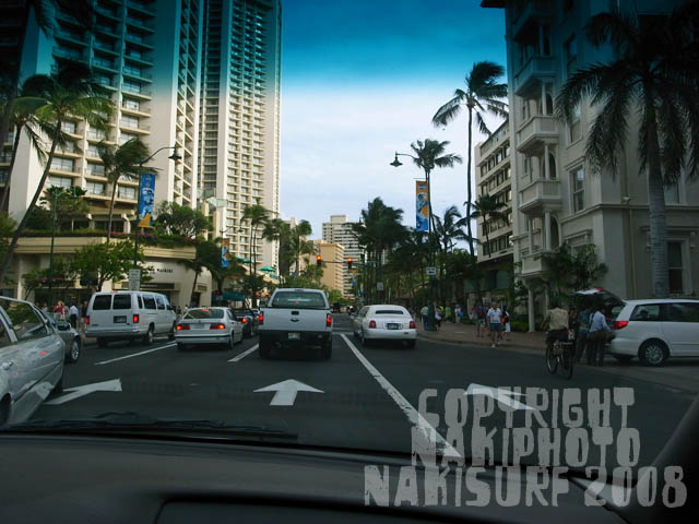 純とサヨナラした後で、ダイヤモンドヘッドに波チェックに行こうと、カピオラニ大通りを走る。