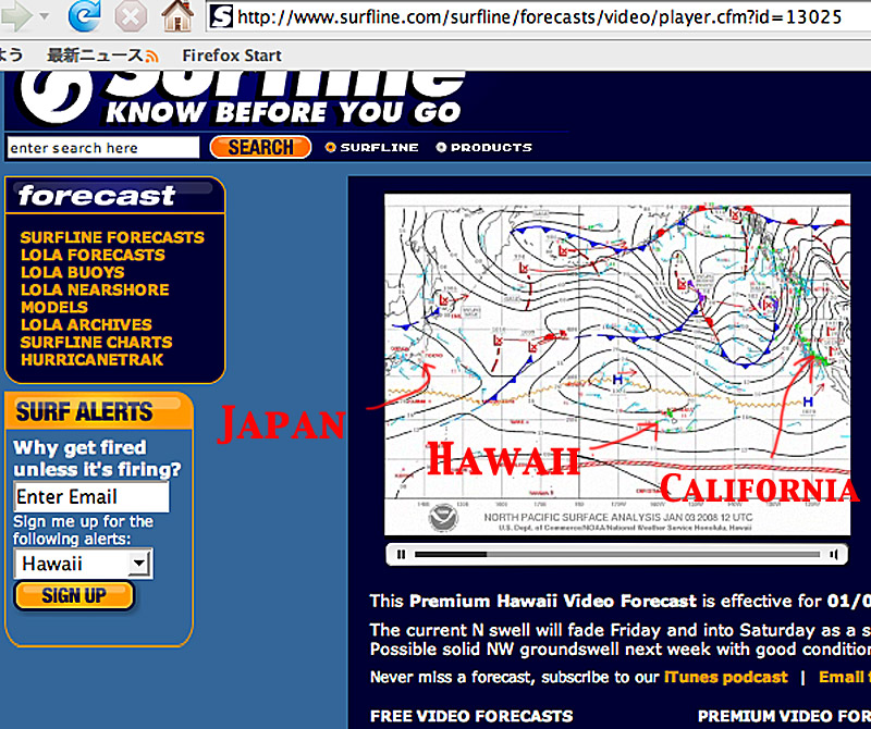 俺はサーフラインのこんな天気図を見て波予想しています。