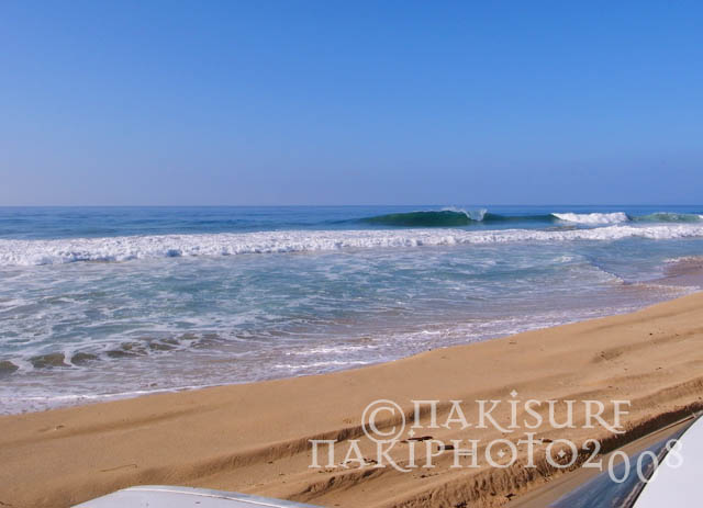 10分ほど見て、手前のトムクンズをチェックするが満潮なのかショアブレイクに近い波質で、それを見て車も止めずにリリコイポイントに向かうことにした。