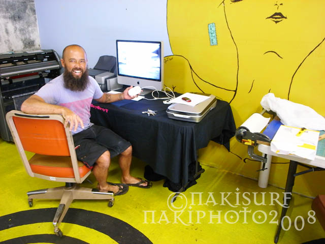 一度メールチェックして、カイル率いるドクサープリントオフィスにステッカーとTシャツプリントサンプルをチェックしに行く。