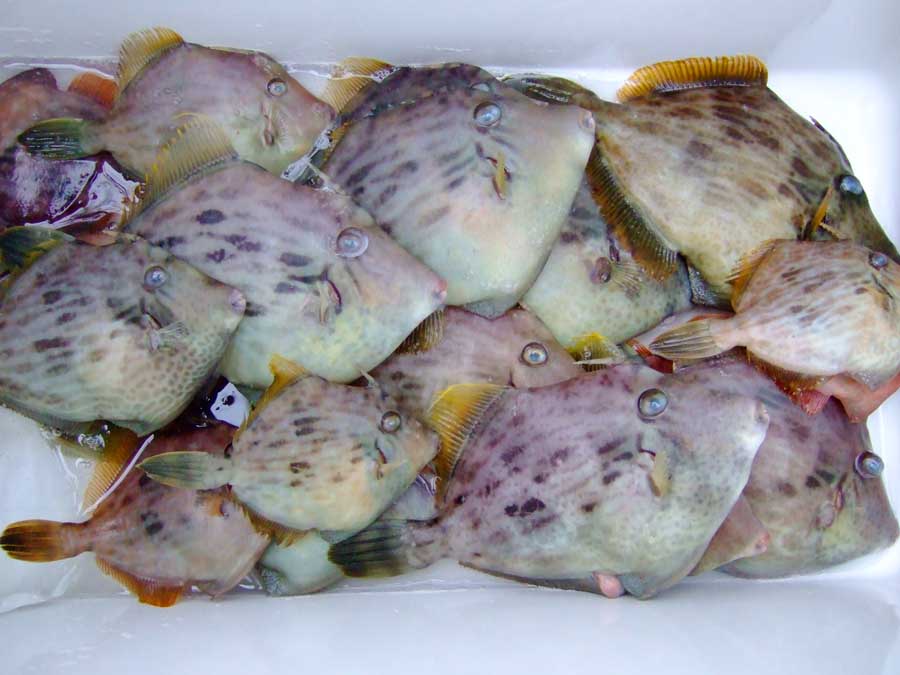 あっちゃんはこのスタンドアップパドルボードで沖に出て、カワハギをこんなに釣ったのだそうで、おいしそう。