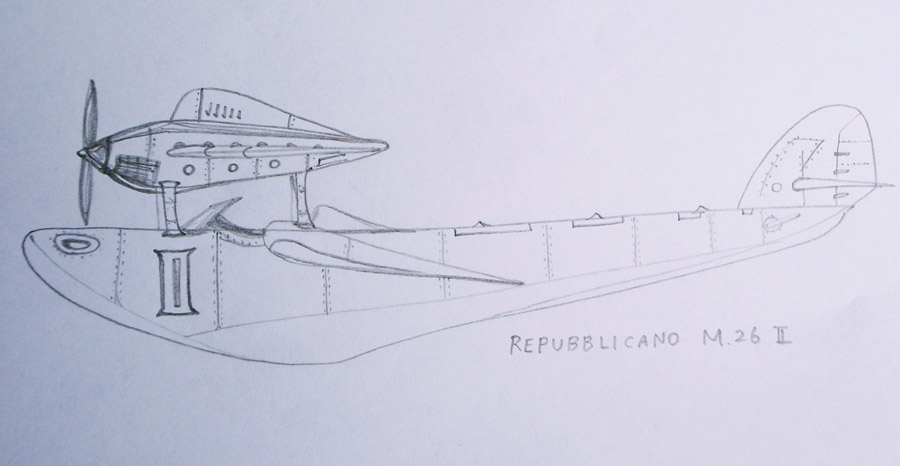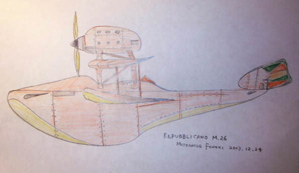 この作品に出てくる飛行艇は1929年以前のものと設定されているけど、1918年頃の飛行艇資料を見つけたので、それを基に俺が再デザインしたのがこれ。↓