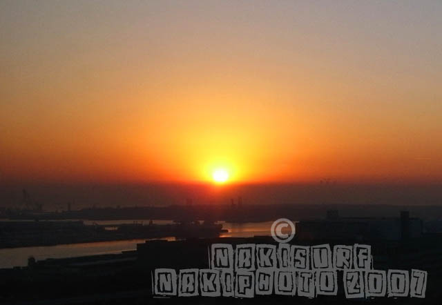 そしてご近所の「カツカワミナミデザインさん」工場に乱入するが、あいにくカツさんは不在で、近くの河川敷に行き、きんちゃん捕手相手に200球の投げ込みを終え、艶やかな夕陽にうっとり。