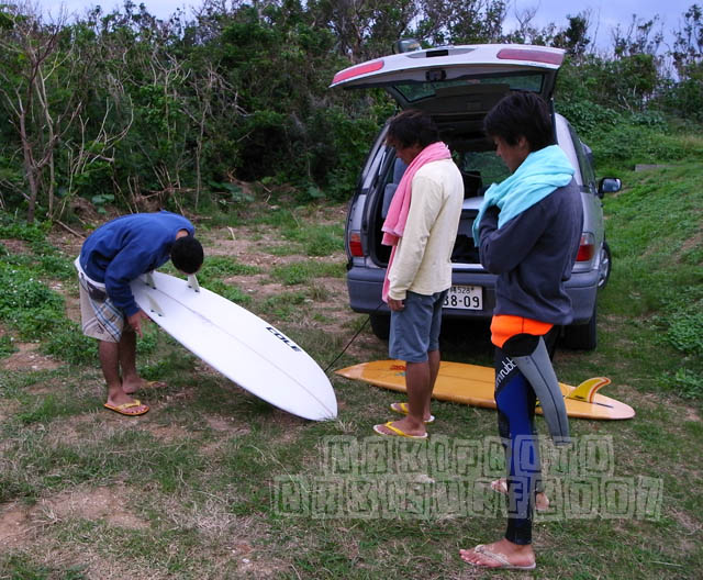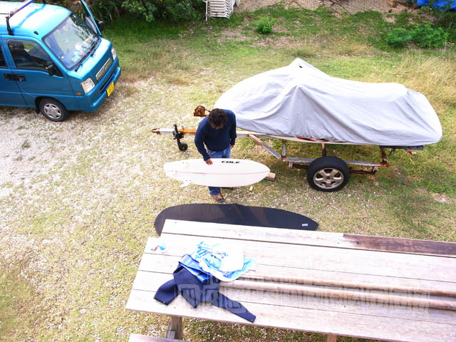 海を見ると、室内に戻って読書をする気にしかならないのだが、ここに住む徳ちゃんによると、風でおこされたうねりが東側に回り込んで、うねりとなり、岬状になった山の稜線で風向きが変化して、まっすぐオフショアとなり、パーフェクトなライト波の場所があるという。