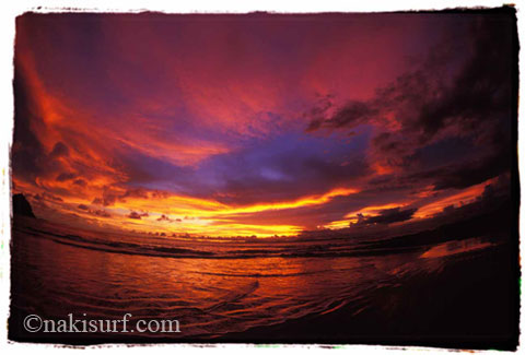 今日は土井さんと夜明け前から波乗りに行くと、うっとりするような夜明け空でした。