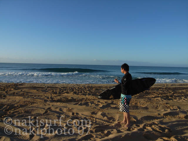 イナリーズが極小となったので、ソフトサンドへ行くと腰胸程度の美しい波がブレイクしていた。