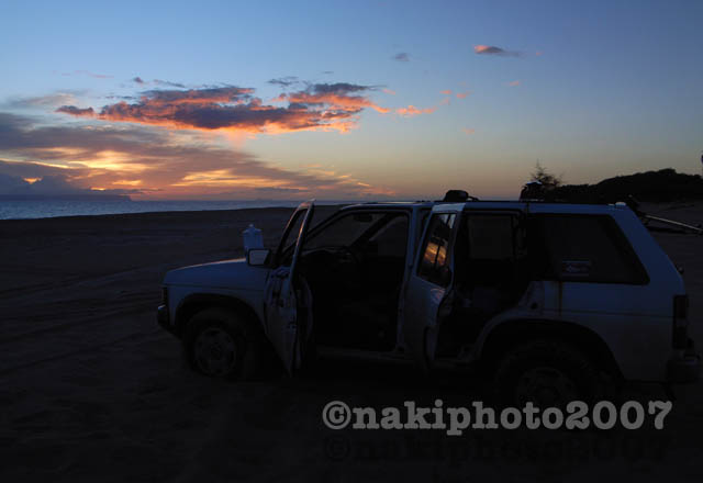 夜明けからずっと波乗りして4時間半、もういい加減疲れたので「次の波で先に上がっているよ」