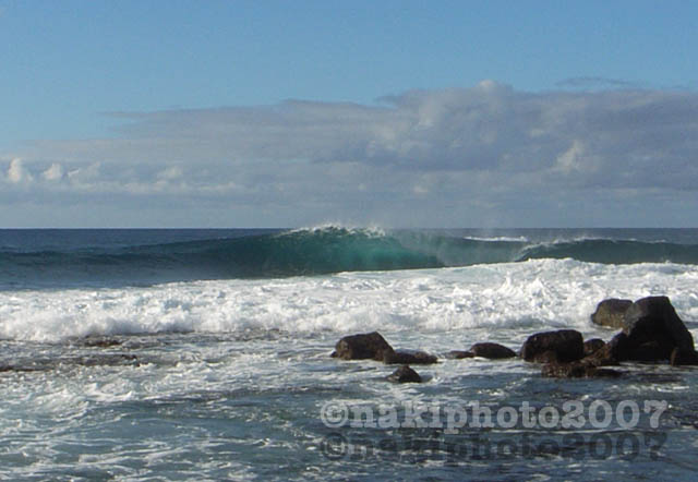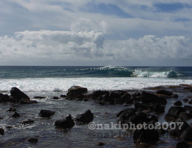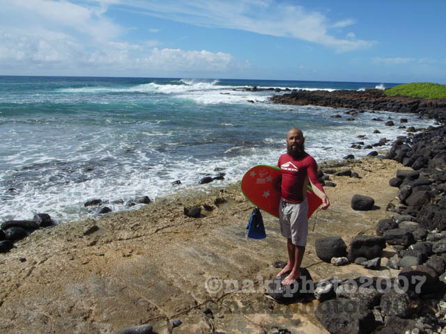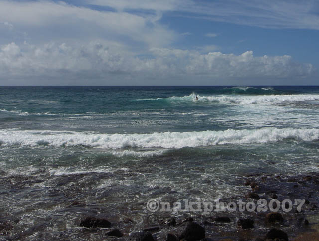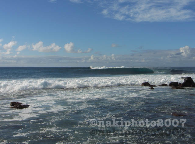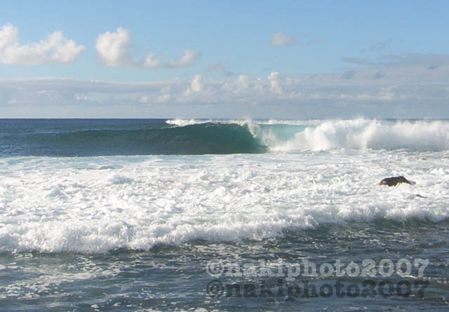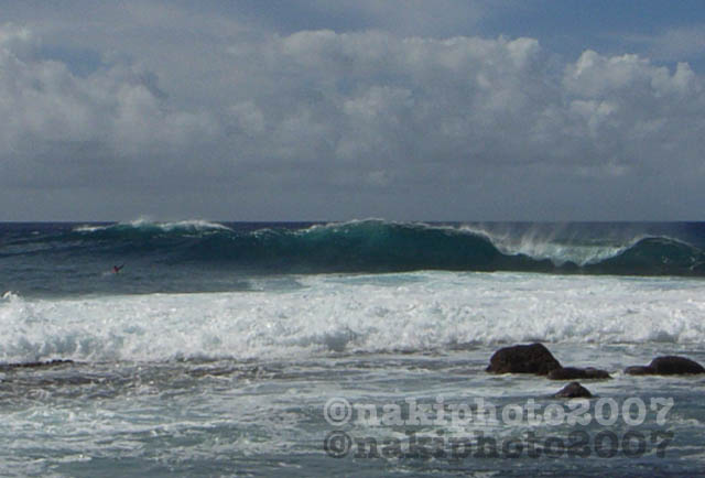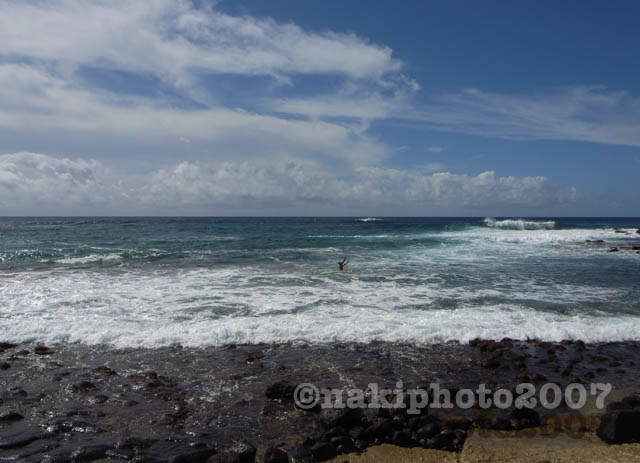 以前ここに純城(フォーカラット)が来て、たったひとりでサーフしていったけど、それを目撃したカイルによると、「JUNがワイプアウトしたら岩の上でゴロゴロ転がっていたぞ」という神話が残るほど、彼はチャージしていった。