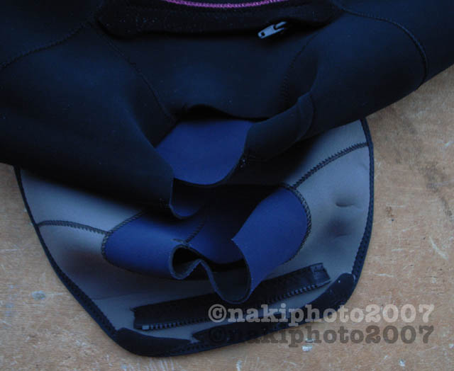 ご質問で多いのが「モキハナジップ」についてでして、前かぶり方式のジップレスにベルクロを補うように短いジッパーがこのように付いています。