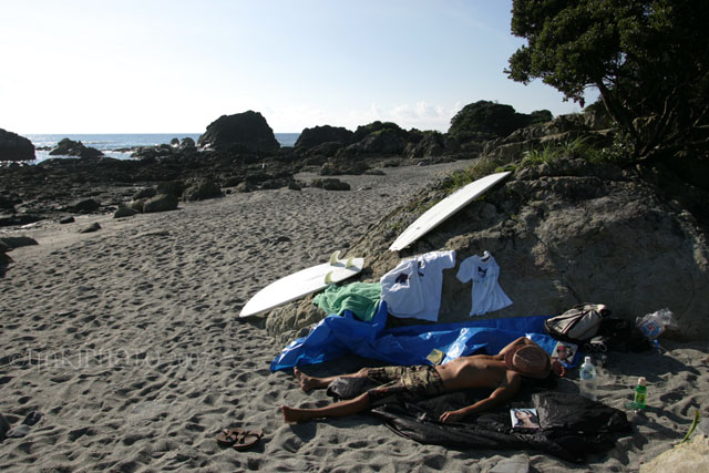 彼は岬から発生するバックウオッシュを利用し、深いターンや速いトリムで乗ってくる。(余談だが、帰り路、俺たちはこのポイント名を『ロックンロール』と命名した)