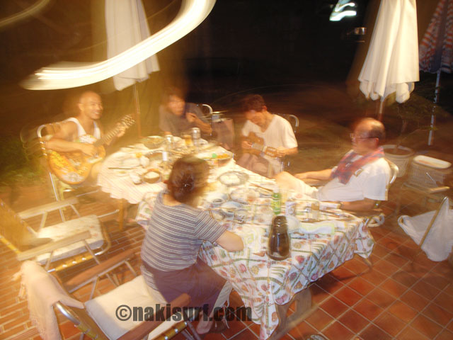 松風国王のはからいで庭園BBQ(晩餐会)を催していただき、グリーンシットのケンヤくんもやってきました。
