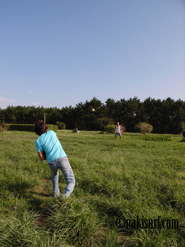 松風駐車場ではきんちゃんと遠投キャッチボール。