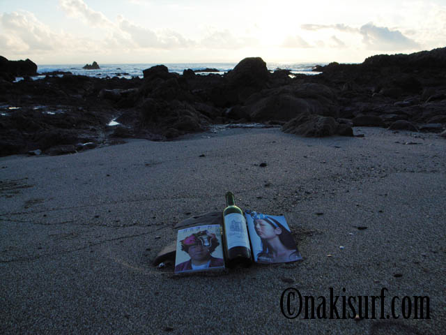 旧溶岩海岸改め一つ目にワインと茂木健一郎さん、dictionaryを持ち込んでいた証明写真。