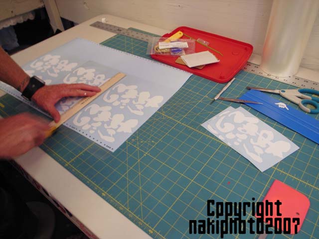 アップルストアに持っていく「ありがとう」「DODOGE」ステッカーもここで製作中です。