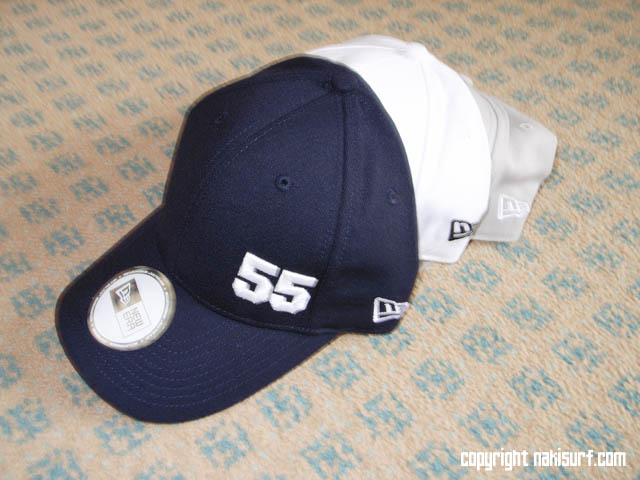 サーフ1の得さんからいただいた新着キャップ「55」と刺繍されてます。