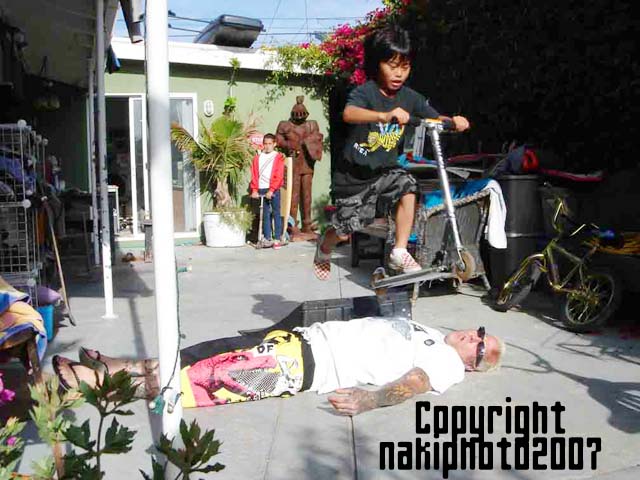 ノアがスクーターで、格闘家をジャンプしているところ。