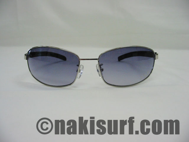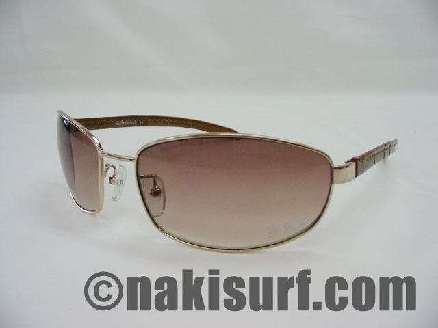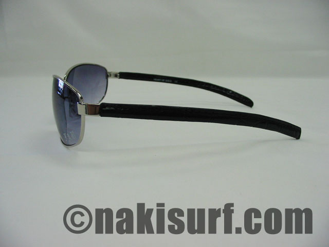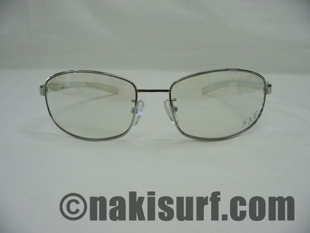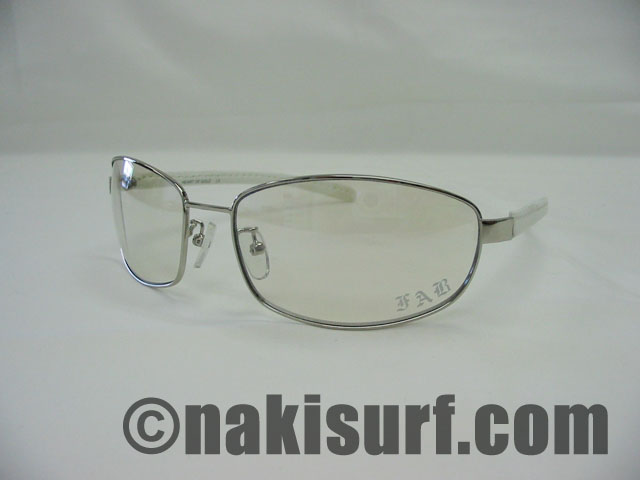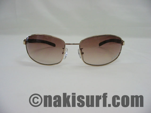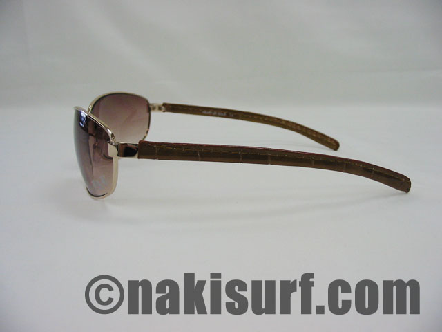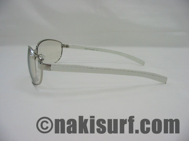 シルバーはテンプル(つる)がホワイトクロコダイルレザー、薄いシャンパンゴールドレンズです。
