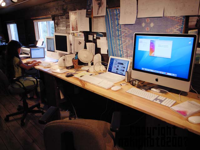 ここに宿題をやりにきたカイラはタイプ用のiMac17"と、検索マシン(12"POWER BOOK)を分けて効率化する技をこの年で使っている。