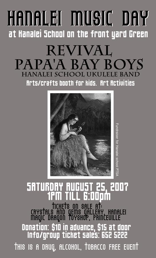 さて、先日このブログでお伝えしたハナレイミュージックフェスティバルのポスターの最終版が完成し、刷り上がって街中に貼られている。