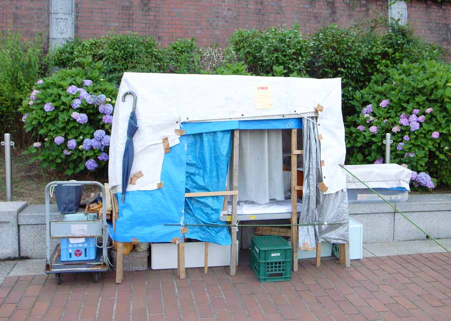に行った隅田川で見た快適長期間野宿進化版のテント。