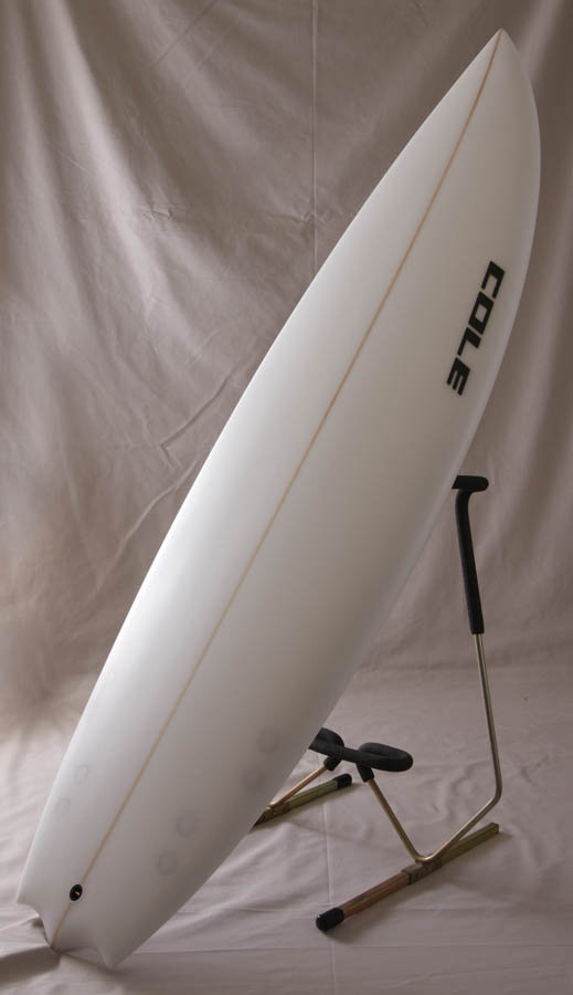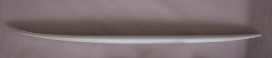 日本の弱い波用にテイルの切れ込みを付けたかったので、販売モデルはこのノーウイングではなく、ダブルウイングをリクエストしておきました。