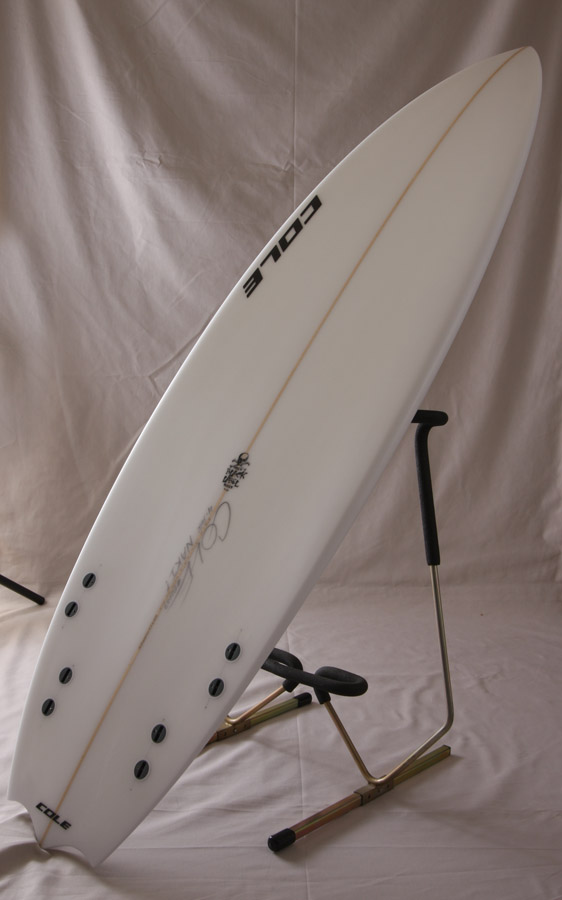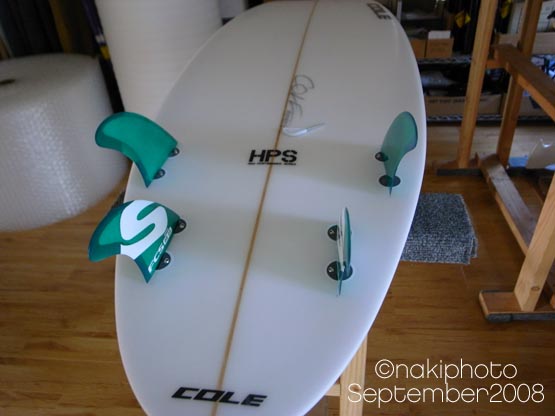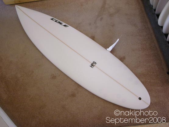 たまには普通シェイプのボードに乗ろうとHPS4を見ていたら#8050123の5'10"x18-3/8"x2-1/8"という自分サイズを見つけたので、一瞬でこれに決める。
