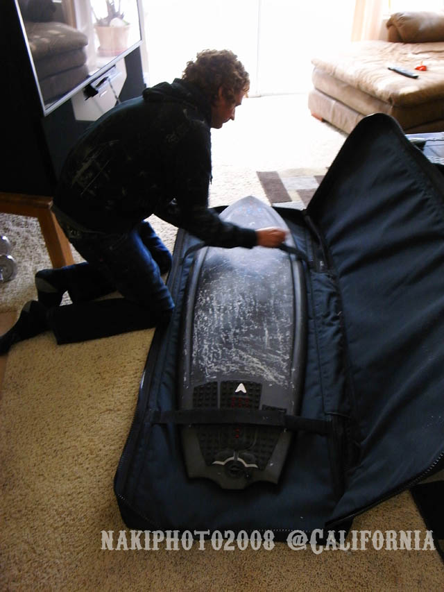 目的地ではAVISO社のバンで、王子ニックがカリフォルニアから30種類のAVISOボードを用意して待っています。