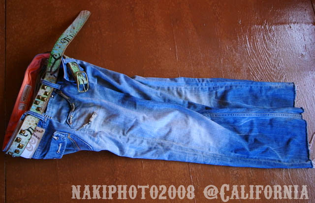 Mだと俺のウエスト28には大きいので、適当に穴を開けてもらった。