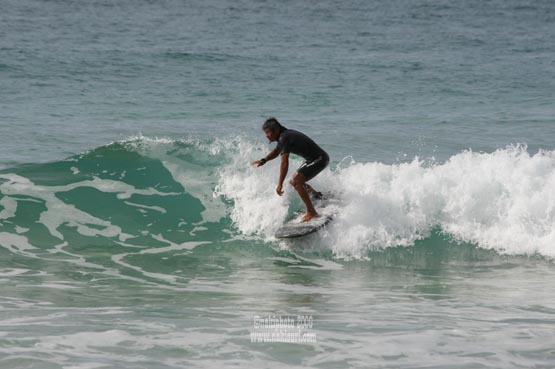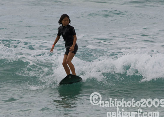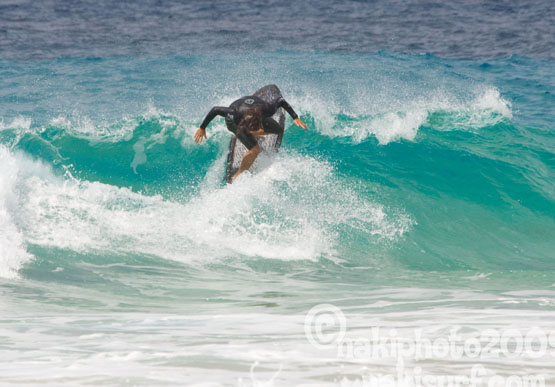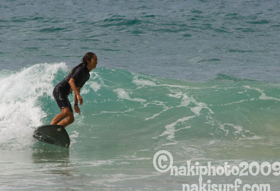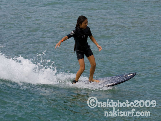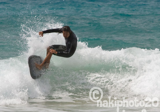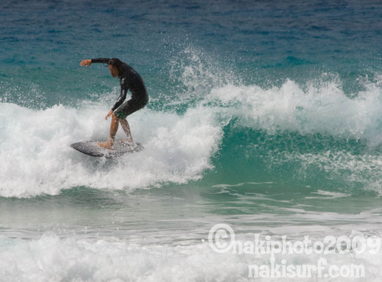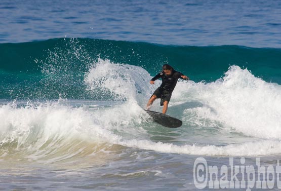 バットフィッシュ5'4"x19-1/8"x2-1/8"を上手に乗り、見ている人は「あれで65才はジェダイ並だよな」と感嘆していた。
