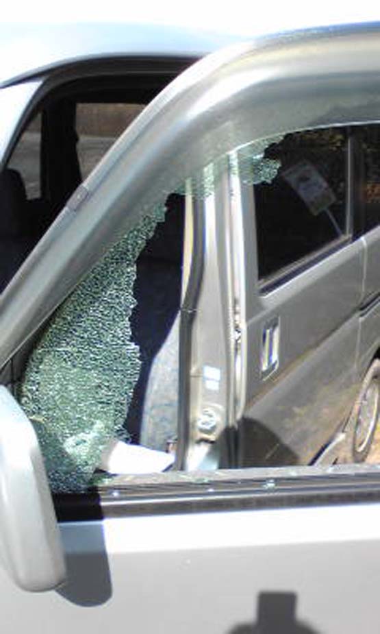 サイドミラーは折れ、ボンネットが開いているのを金具で留めています。