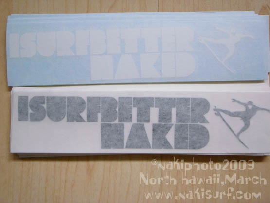 『I surf better naked【俺はヌードサーフィンが調子いい】』という標語ステッカーも入れました↓